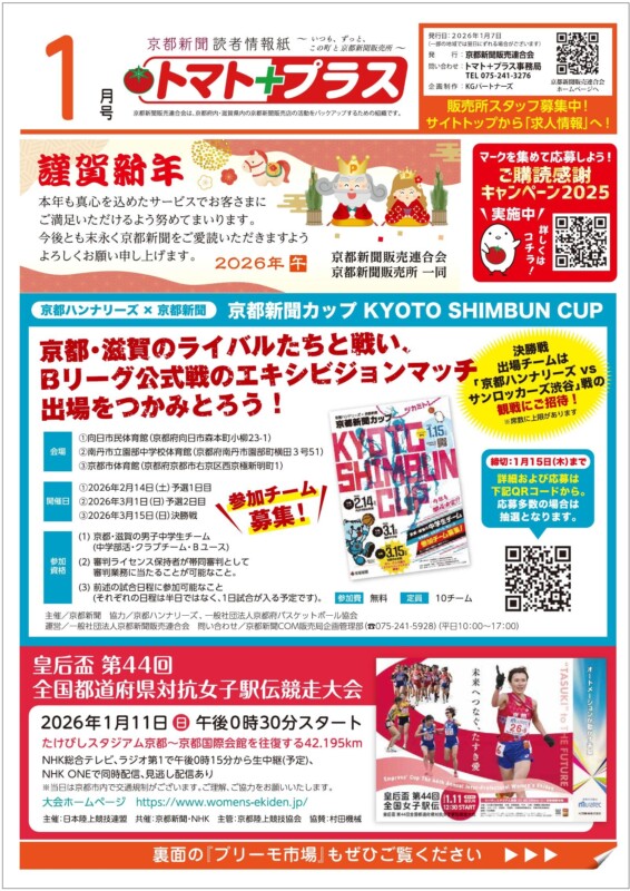 詳しくは新聞をお届けしている京都新聞販売所、もしくはトマト+プラス事務局(075-241-3276)までお問い合わせください。