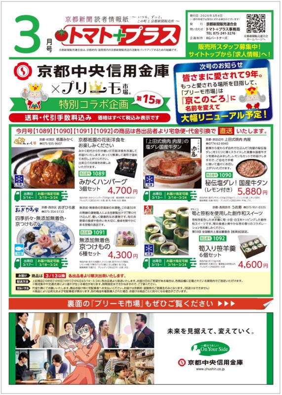 今月のプリーモ市場は、京都中央信用金庫とのコラボ企画を実施しております。