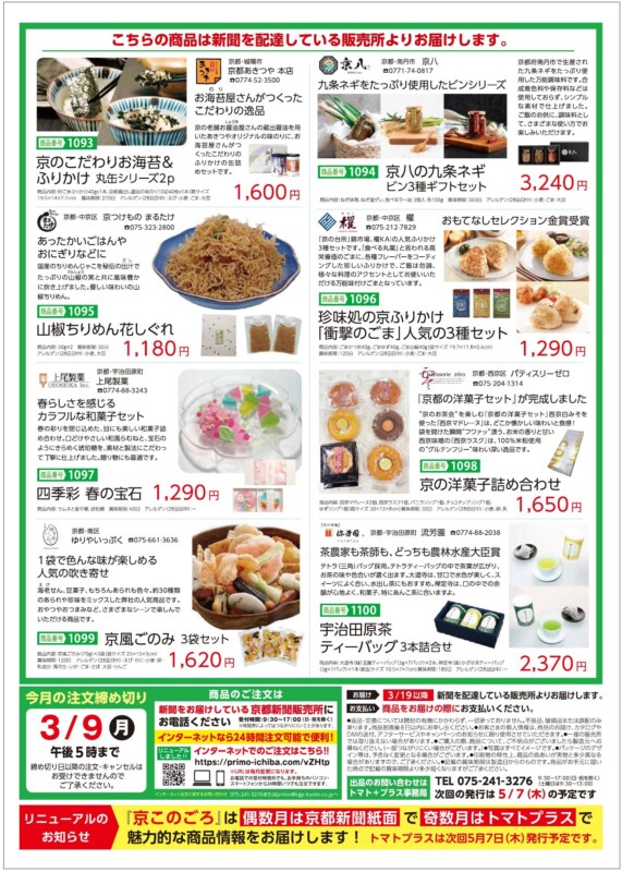 ご注文はすべて、新聞をお届けしている京都新聞販売所にお電話ください。